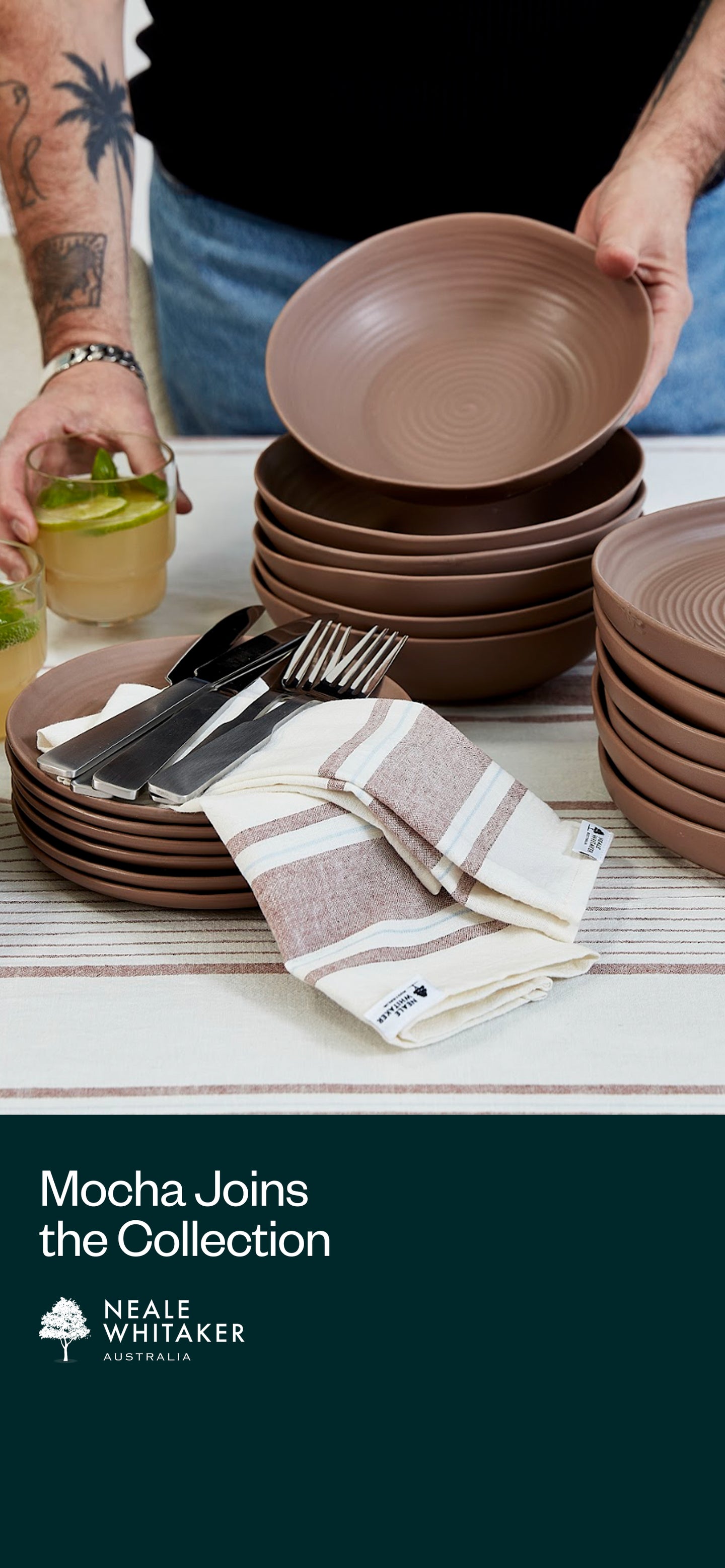 An artisanal range that celebrates natural imperfection. A distinctly wabi sabi style philosophy that is embodied in earthy speckles and organic textures. Browse unique statement pieces across porcelain, stoneware, wood and stainless steel.